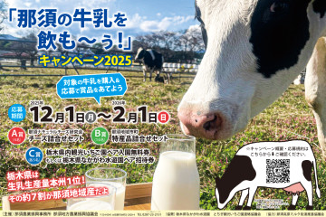 12月の栃木県民牛乳消費拡大月間に合わせて、那須地域の牛乳の消費拡大を図るため、牛乳の購入キャンペーンを実施中!