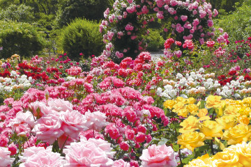 ゴールデンウィークまで春の丘を彩る色とりどりの「昇り藤」を楽しむことができます。