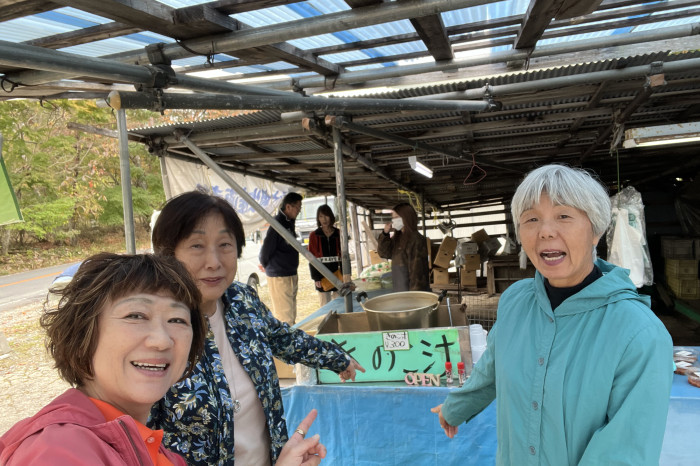 山頂ではのんびりとした森林ウォークを満喫。広々とした景色や秋風に癒されたあとは、地元名物「きのこ汁」でほっと一息。きのこのまろやかな味わいが、体と心を優しく温めてくれます。