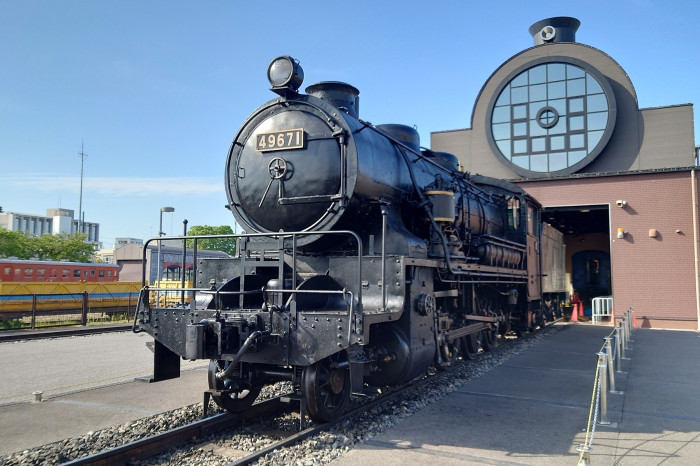 日本で唯一の圧縮空気で自走する9600形SLやD51形SL、客車のスハフ4425号などを展示。