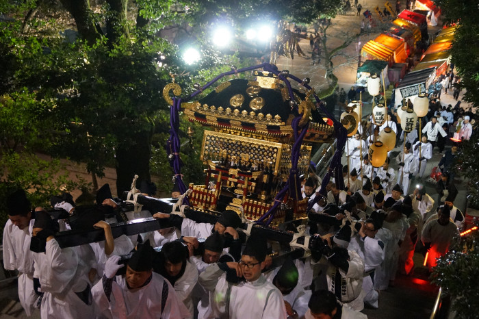 | 開催時間 | ■ 8:00~20:00 お焚き上げ(受付は18:00まで) ■16:30 出御祭(社殿内) ■17:00 御旅所祭(田楽舞奉納) ■17:30 市内渡御 ■19:00 帰還 ■19:30 還御祭(社殿内) |
