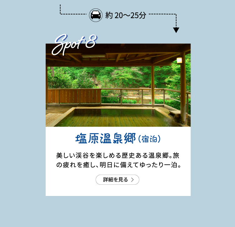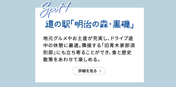 ● TEL 0287-63-0399(道の駅 明治の森・黒磯)