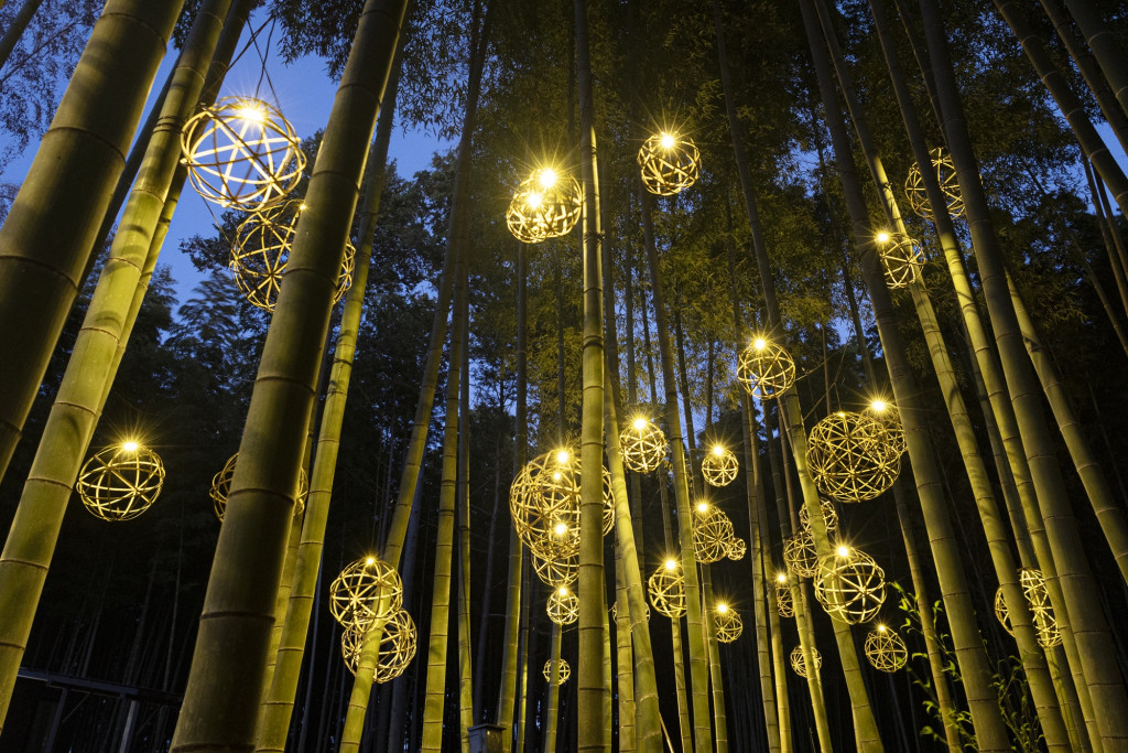 また、暗闇の中に切りとられた夜の竹林風景を竹あかりの光がやさしく幻想的に照らし、訪れる人の心を魅了します。
