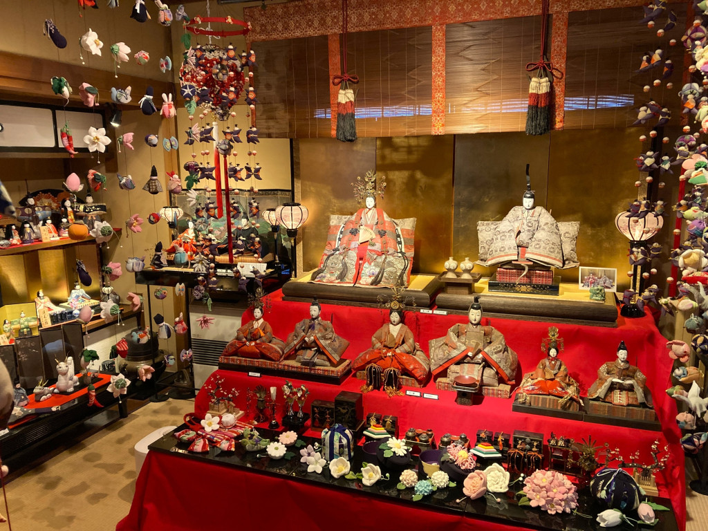 また、地元のお細工物教室の方々が1年がかりで作り上げた豪華な吊るし雛も展示され、大変見応えがあります。