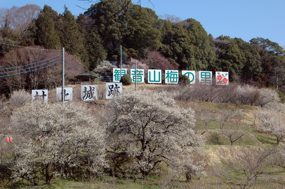 桜川を望む丘陵に広がる観音山梅の里には、約4ヘクタールの敷地に5種類約3,000本の梅の木が植栽され、見事な梅の花を咲かせます。(見頃:3月上旬〜中旬)
