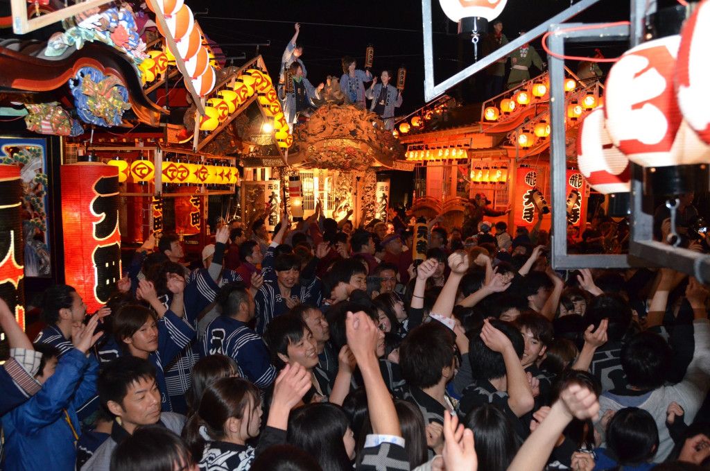 宵まつりの4月18日(土)は、19:00過ぎに金燈籠交差点付近に9台すべての屋台が集まり、それぞれの囃子が一斉に鳴り響く「ぶっつけ」が祭りの醍醐味となっています。