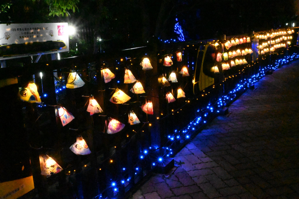 釜川周辺では、釜川沿いの樹木イルミネーションによる光で幻想的な空間が演出されます。ふれあい滝周辺に子どもたちの作品が光り輝き、宇都宮工業高校生による小水力発電のイルミネーションも点灯します。