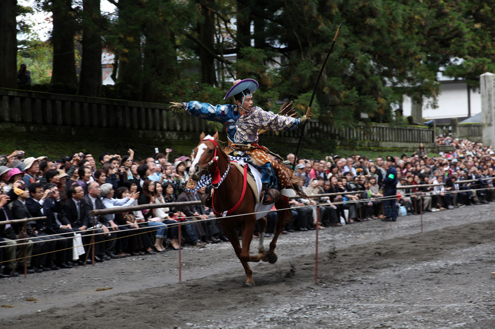 精鋭12人の射手が「陰陽射(いんようい)」という勇ましい掛け声とともに馬上から次々と的を射抜きます。