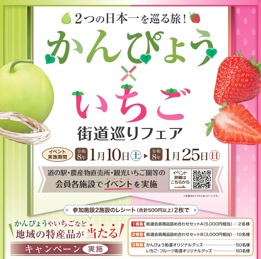 ②かんぴょう街道、いちごフルーツ街道施設の商品が当たるキャンペーンの開催