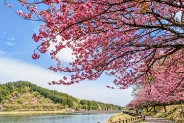 「ダム」の名前が付いた貯水池公園で、自分のペースで桜を楽しめる