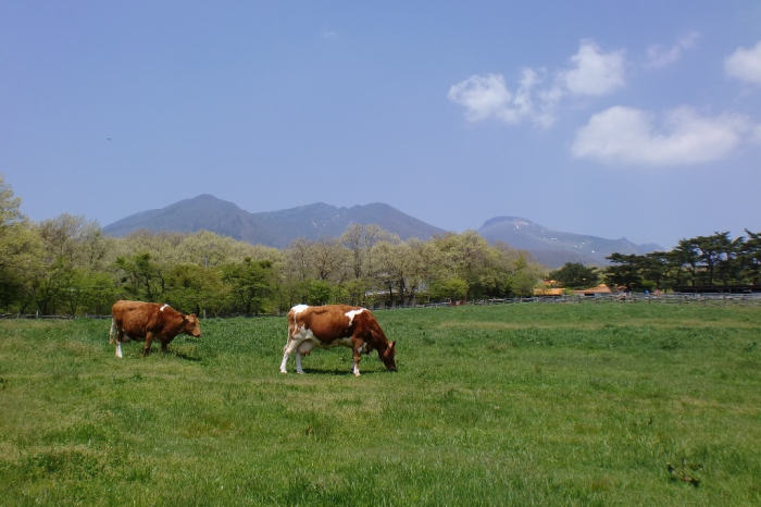 那須岳の麓、標高700メートルの高原に牛、馬、羊、ロバなどが放牧され、動物との触れ合いが楽しめる観光牧場。昔からある牧場の姿を損なわぬよう、できる限り自然のままの姿が残されています。 乗馬やバターづくり体験、アーチェリーやパターゴルフなどが楽しめるほか、牧場内で販売されている牛乳や乳製品、加工品なども人気を集めています。このほ か、牧場からは那須野が原の雄大な眺めを楽しむことができます。
