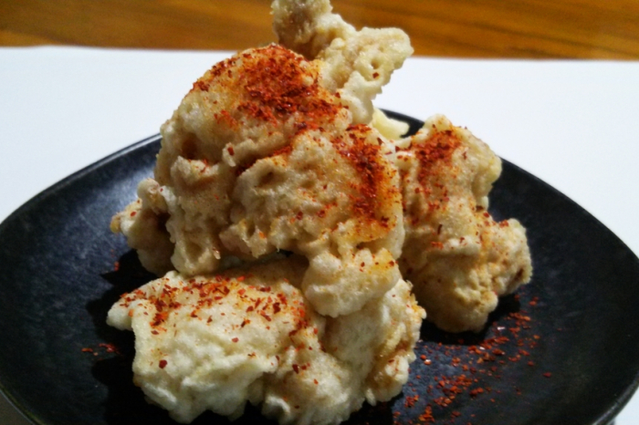 当店では、手羽先の形状をほぐして広げ、鷹の爪に見立てた骨付き肉の旨み、唐辛子のピリ辛がマッチしたかぶりつき系のさんた唐揚げです。