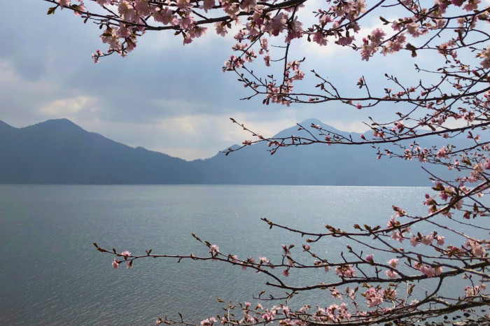 男体山のふもとに広がるのどかな湖畔は四季折々の表情を楽しめますが、特に初夏のツツジ、秋の紅葉が見事です。
