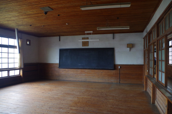 ※通常、内部の見学は行なっておりませんが、毎年11月「粟野夢咲くアートフェスティバル」の会場として様々な作品が校舎内に展示され、見学者は中に入ることができます。