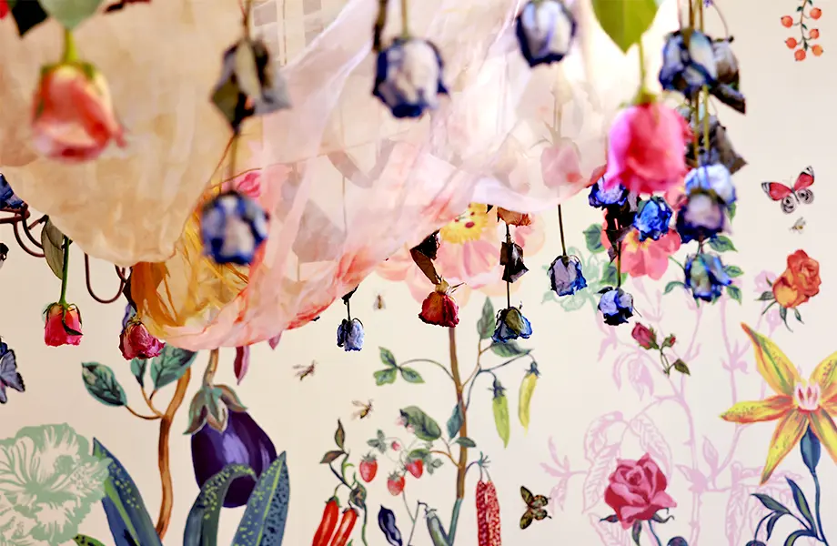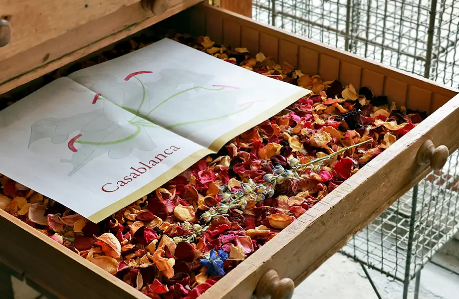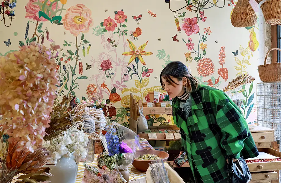 旅の締めくくりは、黒磯の街角にある花のアトリエへ。壁一面に描かれた花の絵は、オーナーの樋爪氏がフランスのアーティストに描いてもらい、大切に持ち帰ったもの。オーナーは、デザイナーとしての経験と海外で培った感性を生かし、花を“売る”のではなく、“選ぶ”、“飾る”という時間そのものを提供しています。ロスフラワーを通して、サステナブルな世界にふさわしい新しい価値を発信しています。