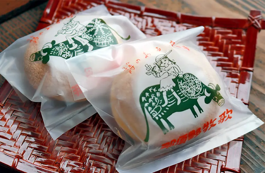 昔ながらの香りを残す老舗和菓子店へ。ショーケースに並ぶ和菓子の中、ひときわ目を引くのが「那須野ボッカ」。レトロなイラストパッケージが心をくすぐる、ブッセ生地のお菓子です。使っているのは、小麦粉とバターと砂糖だけ。素材の良さを生かしたシンプルな味は、“引き算のデザイン”そのもの。包み紙のフォントや色づかいにまで丁寧なこだわりを感じます。目に入るたびに心がほっこりするのは、デザインの力かもしれません。