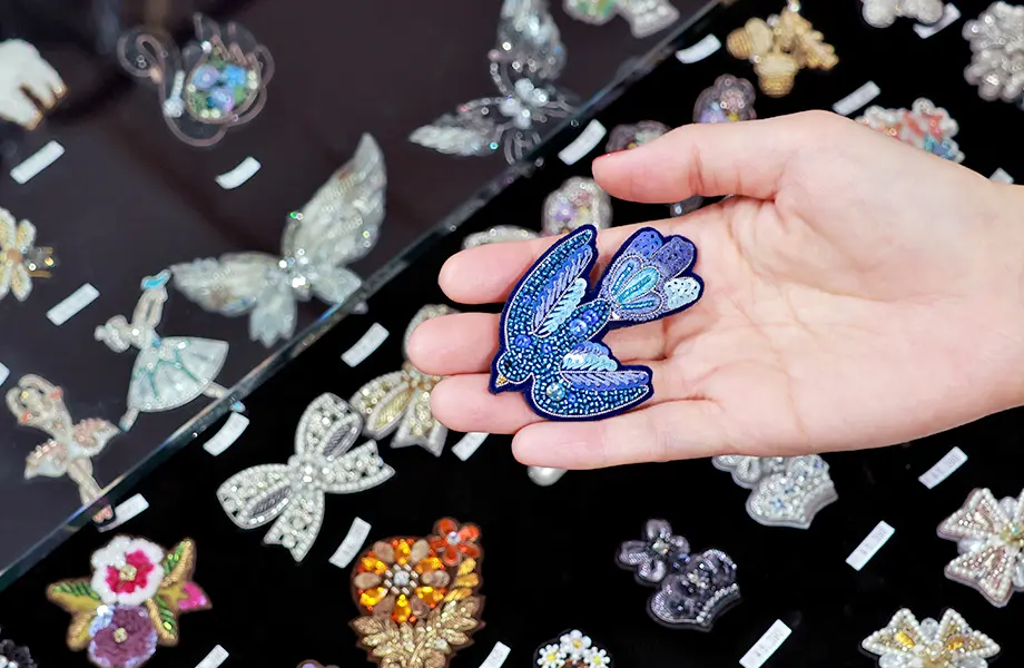 午後は、ファッションデザイナーであり、刺繍作家の田川啓二氏が手がける美術館へ。館内には、オートクチュールビーズ刺繡をアートとして昇華した作品が並び、ビーズやスパンコールが光を受けて静かに輝きます。黒柳徹子さんのステージ衣装を手がけたことでも知られ、館内では彼女のために制作された特別なドレスも展示。針と糸が織りなす作品は、繊細でありながら力強く、ここまでにかかった膨大な時間と手仕事の尊さに圧倒されます。この揺さぶられた感情のひとつひとつが、感性を磨いてくれるのかもしれません。