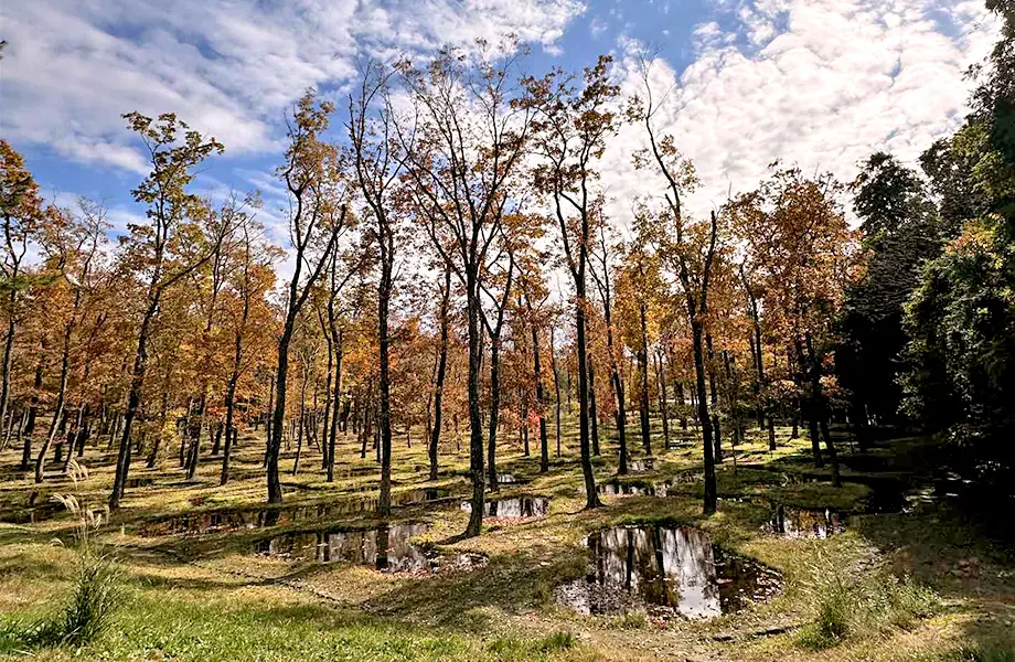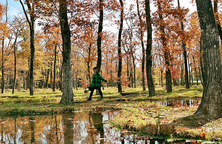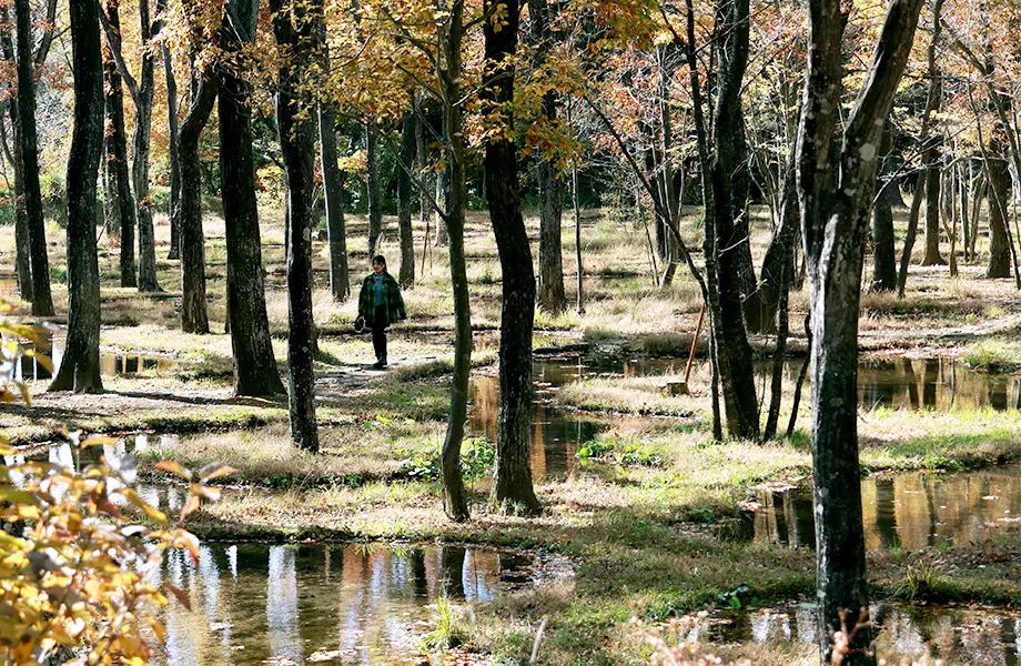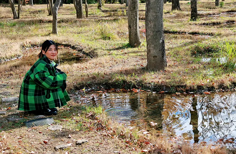 ずっと見てみたかった「水庭」。実際に訪れてみると、想像以上に静かで、息をのむほど美しかったです。人工的につくられた池なのに、まるで自然が最初からそこにあったみたい。一本一本の木がまるで会話しているようで、ずっと眺めていたくなりました。冬の光の中で、水面がきらっと光る瞬間が忘れられません。