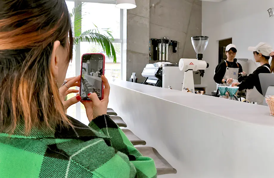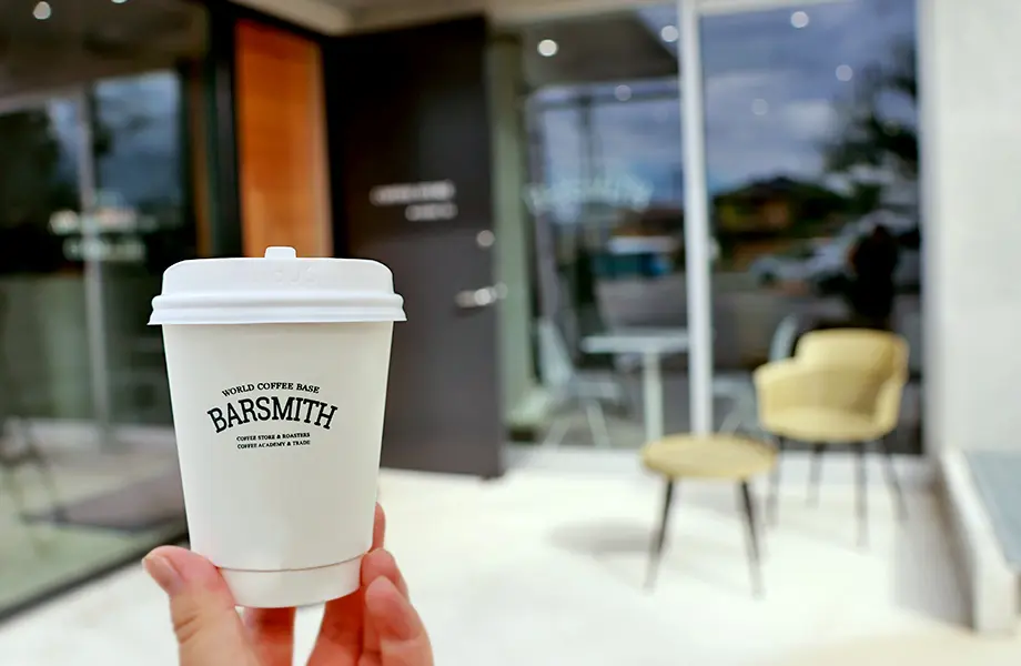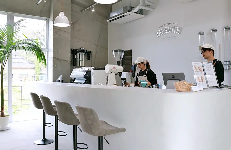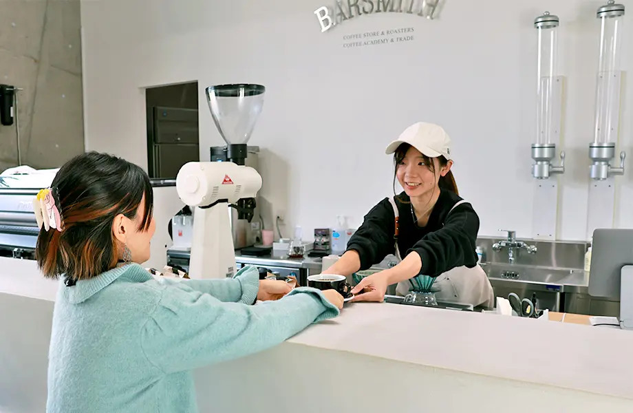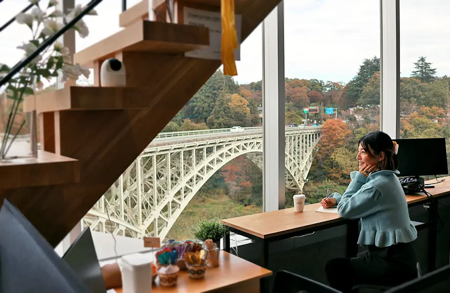 日が傾き始めるころ、那珂川沿いに建つロースタリーカフェへ。バベルの塔をイメージした建物は、2階がカフェ、3階はコワーキングスペースとなっています。美しいアーチを描く晩翠橋を眺めながら、シングルオリジンのスペシャルティコーヒーをひと口。焙煎の香りと柔らかな光のグラデーションが、空間全体をひとつのデザインのように包み込みます。静けさの中で、今日見た色や形が頭の中でゆっくり浮かび上がってきます。たくさんインプットしてきたこの旅も、次が最後のスポットです。